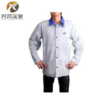 AP2530藍色阻燃布配炭啡色皮袖焊服