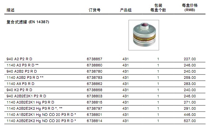 所有過(guò)濾罐均有 CE 標(biāo)記,符合 EN 14387 及/或 EN 143:2000 標(biāo)準(zhǔn)。