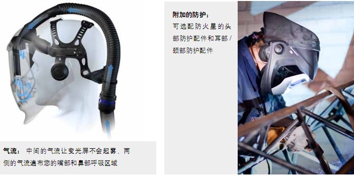 FAC 腰帶閥調節系統搭配使用,組成ADFLO-9100V腰間送風焊接防護系統和FAC長管送風焊接防護系統。