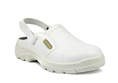 白色安全涼鞋,無紡布襯里,吸水快干,細(xì)纖維鞋面,聚酰胺&EVA鞋墊,雙密度PU注塑鞋底,金屬防砸包頭,耐油、耐腐蝕。