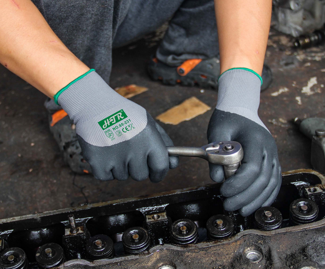 產(chǎn)品介紹:本產(chǎn)品采用特種纖維制作而成,手背3/4浸耐油發(fā)泡丁腈,透氣性好且有很好的耐磨性、防滑和防油等性能,人體工學手型設(shè)計,具有很好的透氣性,舒適度與靈巧度好,有效減緩作業(yè)疲勞度。