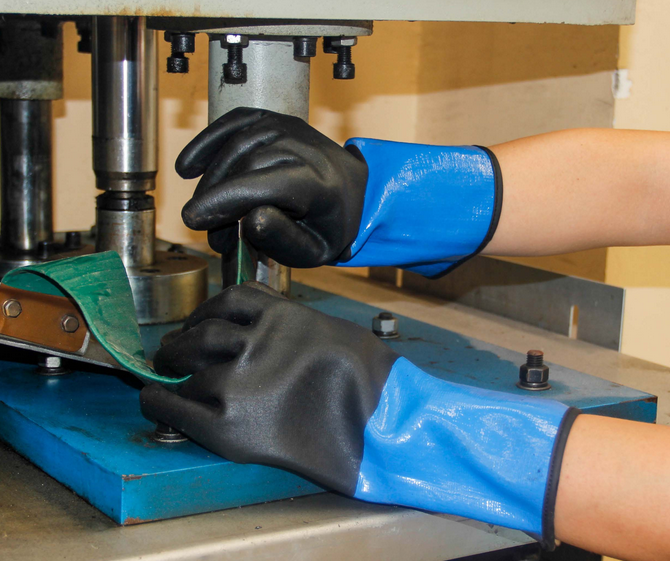 產品介紹:防割纖維,手掌手背雙層浸膠/全浸,手背及袖口可防止油,水的滲透,為潮濕及大量油性環境提供抓握力,適用于各類機械行業油性環境,很好的防割性能,防割等級可達到5級,人體工程設計,舒適度和靈巧度俱佳。