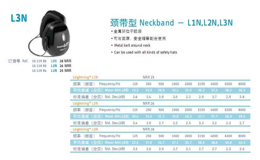 產(chǎn)品名稱:斯博瑞安1011994/1011995/1011996頸帶型耳罩\金屬環(huán)位于頸后\可與面屏安全帽等配合使用