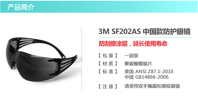 產品名稱:3M SF202AS灰色防刮擦防護眼鏡