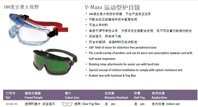 產(chǎn)品名稱:霍尼韋爾1006193 V-MAXX聚碳酸酯防霧護(hù)目鏡