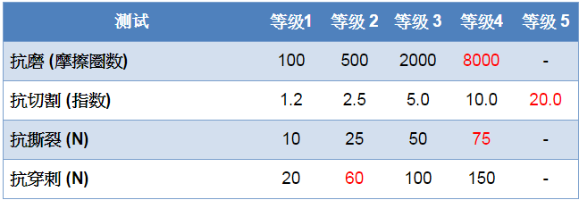將手套以標準力量接觸設定溫度(100 ℃, 250 ℃, 350 ℃ 或 500 ℃),觀察手套內部溫度,記錄多少秒后手套內部溫度上升10 ℃(即使用者手掌溫度上升10 ℃的時間,一般人體溫度為37 ℃,約47 ℃時會開始產生一級燙傷),需大于15秒才能判定合格,也就是符合該等級的手套能于該設定溫度下保護使用者的手至少15秒。