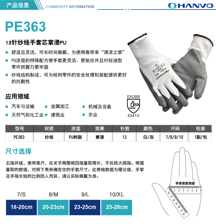 產品名稱:恒輝PE363 PU樹脂涂層防切割手套