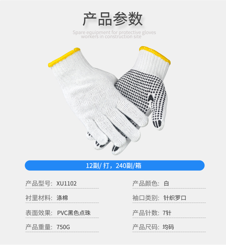 興譽/XYEHS XU1102 750g PVC點塑紗線手套