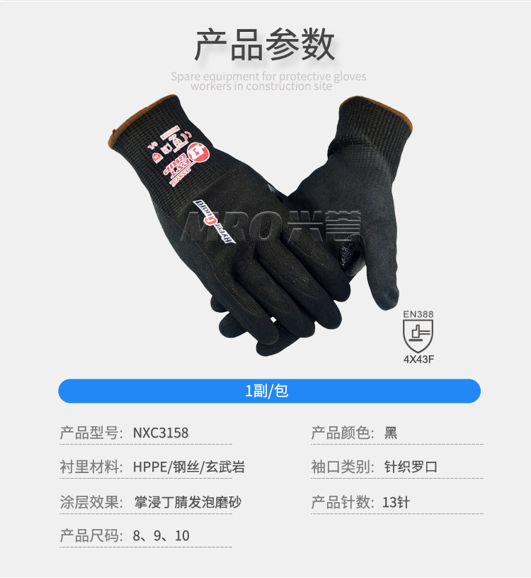 產品名稱:恒輝NXC3158Q丁腈發泡磨砂防切割手套