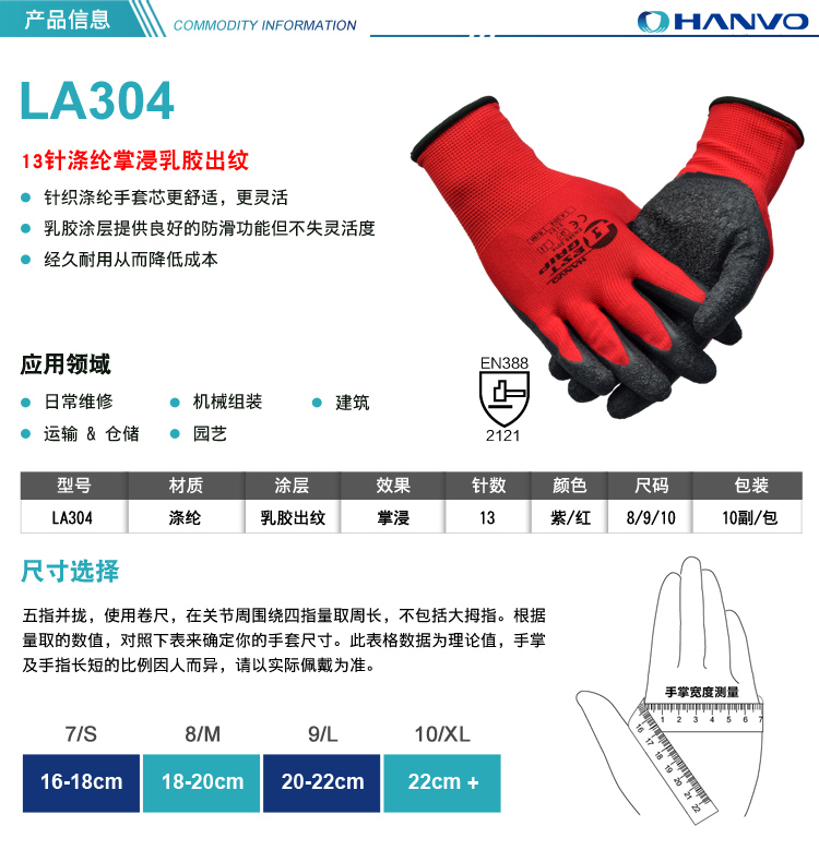 產品名稱:恒輝 LA304 皺紋浸膠勞保手套