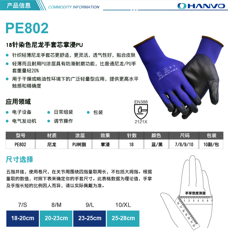 產品名稱:恒輝PE802 PU涂層手套