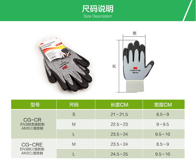 產品名稱:3M 舒適型防滑耐磨手套 防割型 L2 M 手套