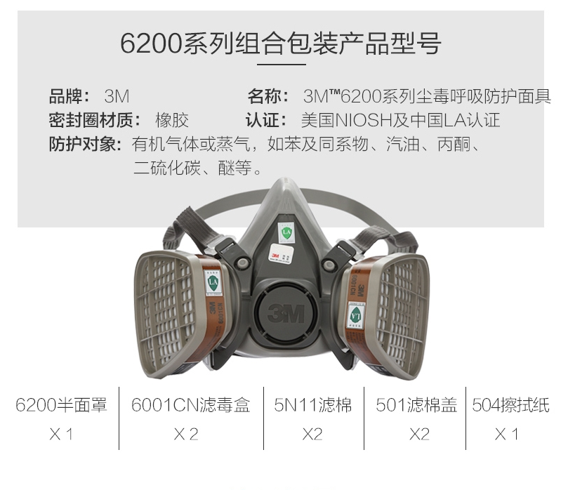 ●3M 6200+6005CN+5N11+501防甲醛7件套;