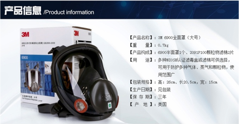 產品名稱:3M 6900 全面型防護面罩(大號)