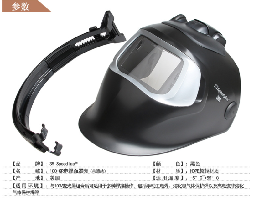產(chǎn)品名稱:3M 100-QR自動變光焊接面罩 (含滑軌 不含變光屏)(需搭配100V自動變光屏使用)