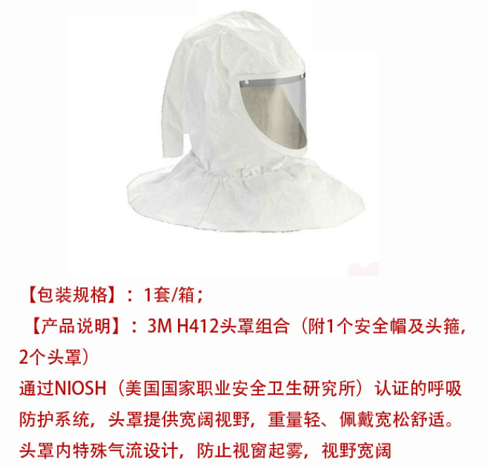 ●3M H 412頭罩組合,附1個安全帽及頭箍,2個頭罩;