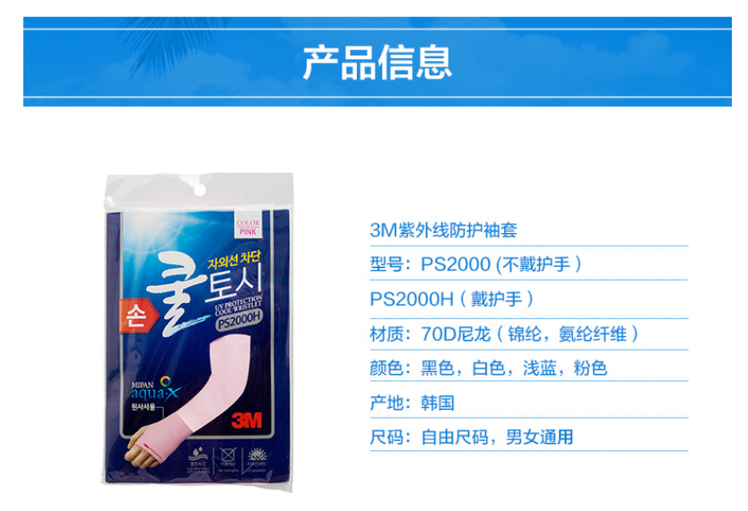 產品名稱:3M 紫外線防護袖套PS2000防曬袖套