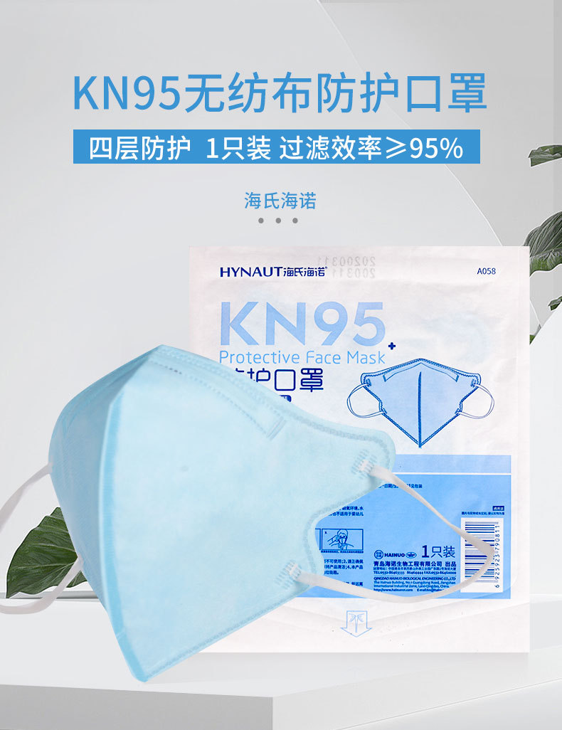 產品名稱:海氏海諾 A058 KN95 防護口罩耳戴式四層獨立包裝