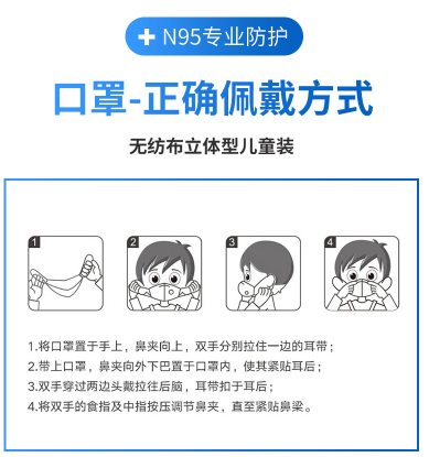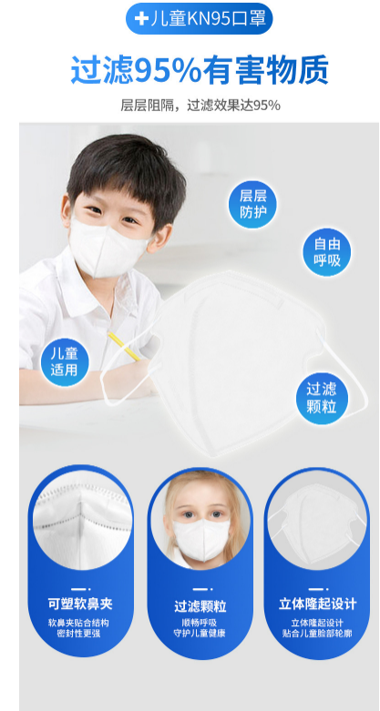 產品名稱:海氏海諾 A067 KN95 一次性防護兒童口罩耳戴式四層
