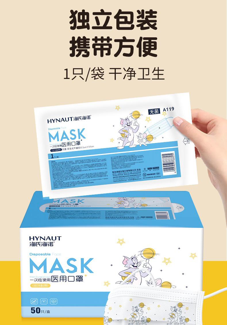 產品名稱:海氏海諾一次性口罩三層獨立包裝(卡通款)